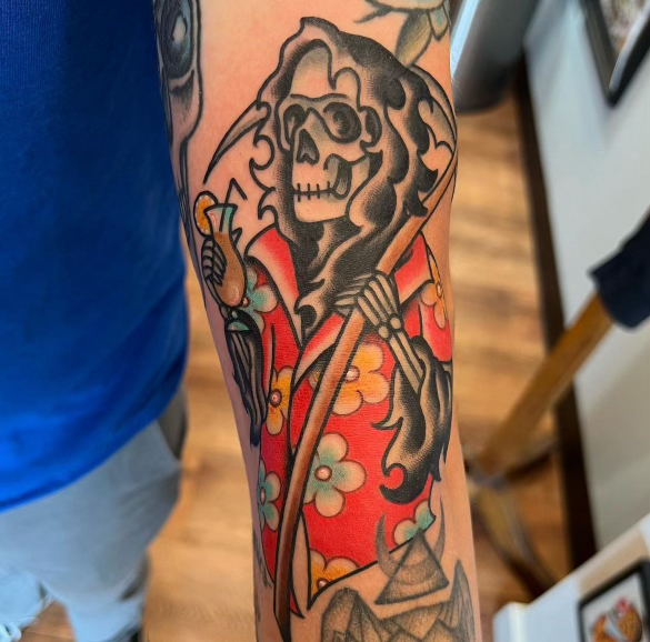 I grew up in Bridgeview Illinois. Shorty after highschool I served my apprenticeship with the Timeless crew and have been tattooing here ever since. Other than tattooing, I have a love for cars, skateboarding, and my weiner dog, Benny. I am very well rounded in all styles of tattooing and I enjoy taking on any size project.